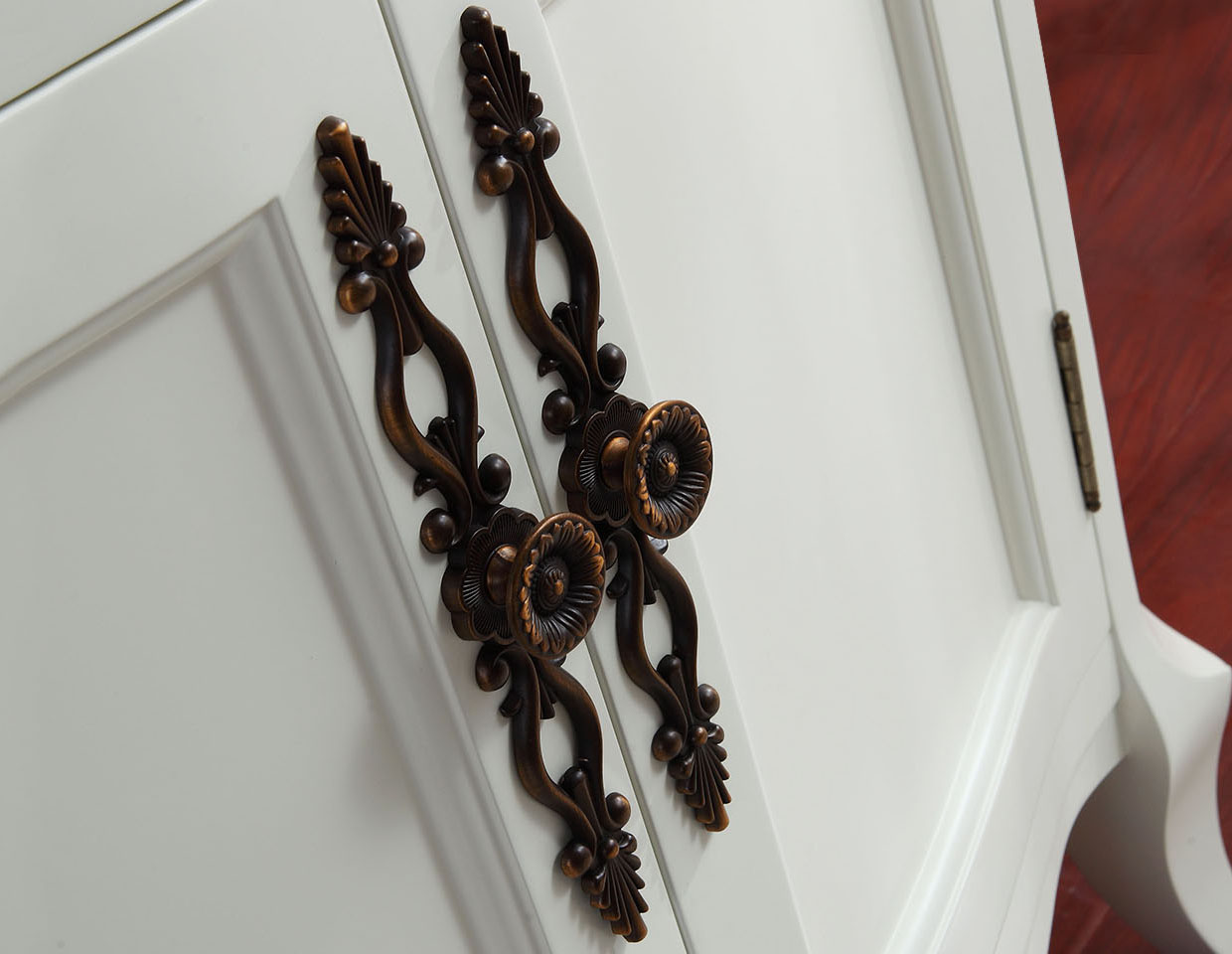 卡枫· 美式系列它有着巴洛克的奢侈与贵气,但又结合了美洲大陆这块水土的不羁。找寻文化根基的怀旧、贵气加大气而又不失自在与随意的结合,代表着有文化感、有贵气感,还不能缺乏自在感与情调感的生活方式。美式产品有着简约与华贵的天然属性,而罗希系列产品,追求柔和纤弱的效果,在柜脚处使用细腻的小圆角处理,代表美式性格中优雅细腻的性格。