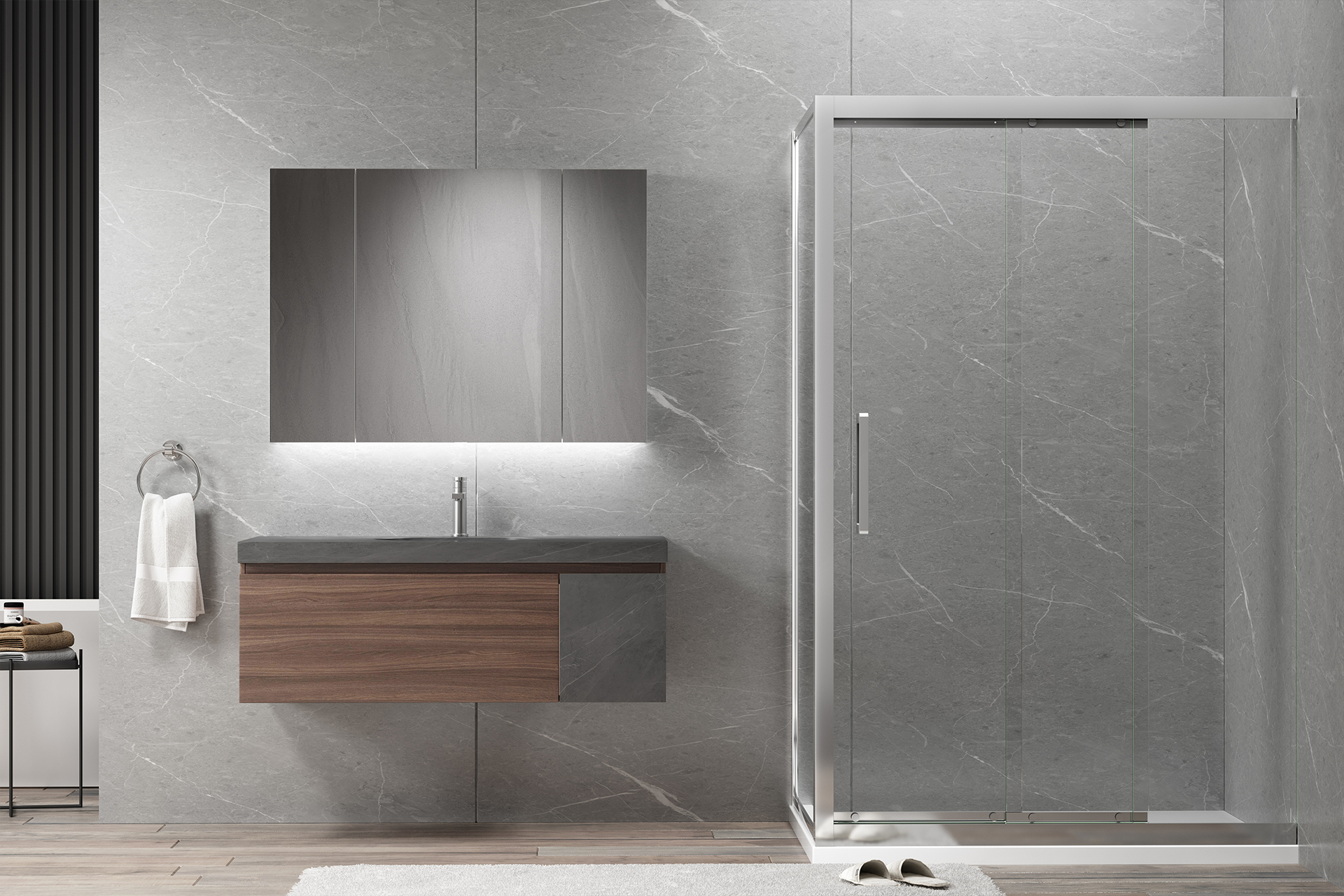 波西尼亚灰岩板 北美胡桃木皮柜体